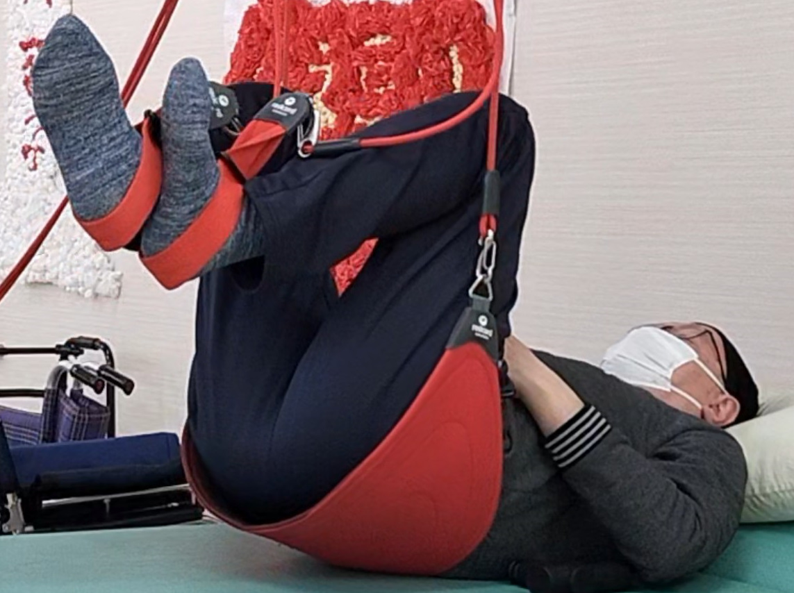 ロープに吊るされることで重力による重みが軽減され、筋肉や関節への負担が少ない状態で運動できます。