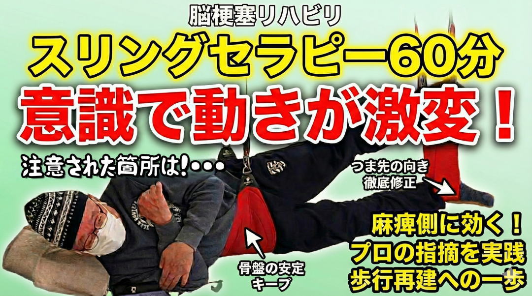 これらの運動を30分ほど行い、最後に左右を入れ替えて健常な脚を下にしてみました。動画で見るとその差は一目瞭然です。麻痺側を動かす際はまだ動きがぎこちなく、効果を出すためにはまず可動域の拡大と柔軟性が必要な段階だと痛感しました。