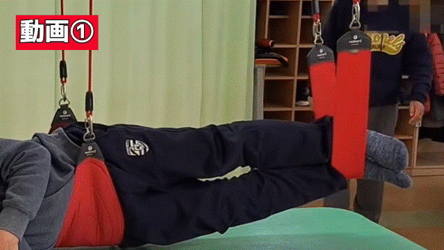 - 脚を前に出しやすくしたい、体幹を強くしたい場合:動画②(太ももの内側、内転筋)のトレーニング。