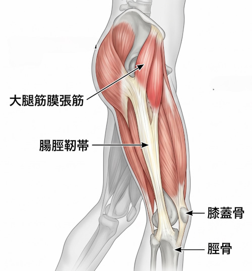 腸脛靭帯が硬くなると、膝関節が外側にねじれ、股関節や腰の痛み、骨盤の歪みなど、周囲の筋肉や関節への負担が積み重なっていきます。