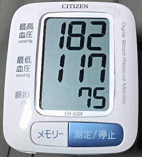 先週の金曜日から血圧が180〜160台で推移し、なかなか寝付けず気分もすぐれない日が続いていました。来週通院の予定でしたが、体調への不安が募り、予定を早めて本日病院へ行くことにしました。