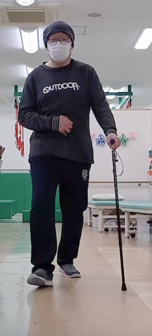 ガニ股気味なのは一旦置いておくとして、右麻痺側の足先が少し上がるようになっていたのは嬉しい発見です。