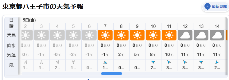 八王子では、朝5時に氷点下2℃を記録し、今季初めての氷点下となりました。道理で朝7時過ぎまで布団から出ることができなかったわけです。