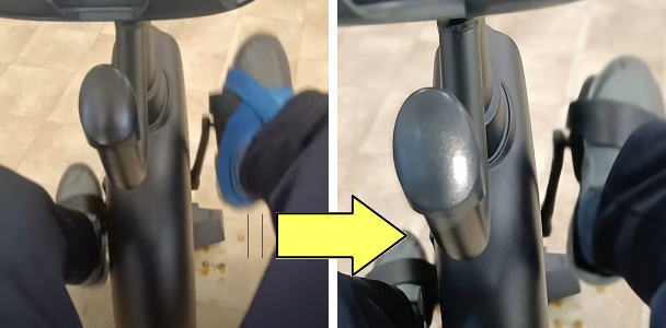 いつものリハビリメニューに移り、有酸素運動として、トレッドミル(速度2.4、傾斜2)、リカンベントバイク(負荷2)、ニューステップ(負荷5〜7、YouTubeのデモ動画を見ながら)を各10分ずつ行いました。バイクでは、これまで右麻痺足をテープで固定していましたが、今回は外して挑戦してみました。意識すれば踵が当たることはありませんでした。
