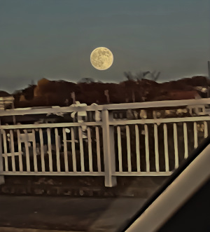 帰りの車の中で、低く大きく輝く月が見え、皆で大騒ぎしていました。冬の澄んだ空気の中で見る月は、格別な美しさでした。